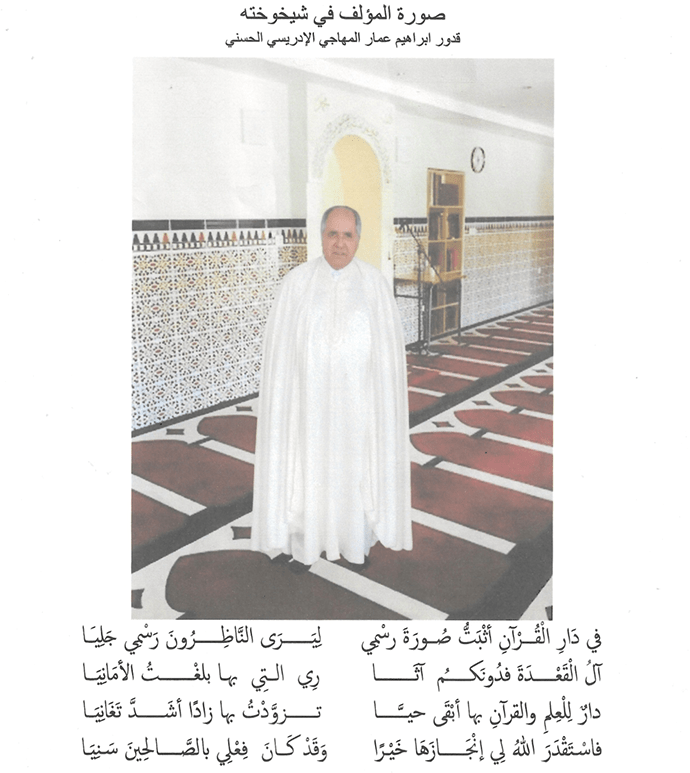 يمثل هذا المنظر جانبا من جوانب دار القرآن الكريم المتعددة، التي باتت تشبه في تصميماتها نوعا من الطراز العربي الإسلامي الأندلسي الجميل، كونها تتكون من طابقين للصلاة وللعلم والعبادة، وقبة تتوسطها علوا وارتفاعا، وأعمدة وجدران تكاد تكون في مجموعها مكسوة بالجبس في نقوش وزخاريف من التي ذهبت بها الأيادي عن كل ما هو فن وإبداع، المتمثل في ذاك التراث العربي الإسلامي الموروث منه والمكتسب، من الذي حفلت به العمارة العربية الإسلامية عبر عهود من الزمن، في كثير من بيوتات العلم ودور الثقافة والتربية والتكوين، حرصا مني على عمل يخلد به الإنسان يوم لا ينفع مال ولا بنون، والله سبحانه وتعالى المحمود على نعمه، ومواهب لطفه وكرمه، على ما يسره لي بمنه وفضله على إتمام هذا العمل العظيم، والله الموفق والهادي إلى سواء السبيل،